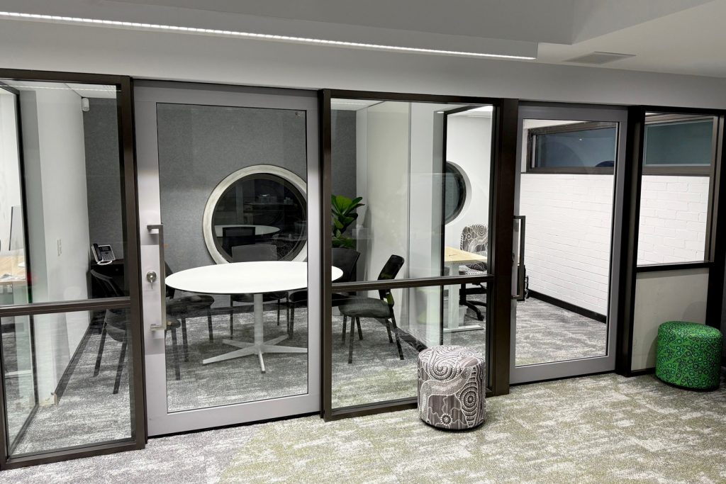 Our dedicated design team developed a suite of acoustic sliding doors that can incorporate various glass types which can also be switched for solid surfaces, such as pinboards or whiteboards. Individual sliders can be installed up to 3m high and a span up to 18m wide, based on the nominated configuration required.